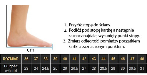 - wyściółki wykonane z włókniny wyściółkowej o wysokiej absorpcji potu, odporne na ścieranie, wyprofilowane tak, aby dostosować się do naturalnego kształtu stopy użytkownika