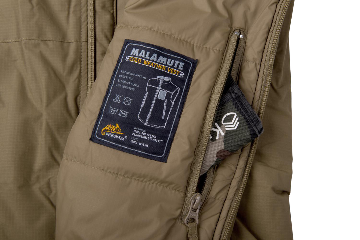 Malamute to warstwa izolacyjna dostosowana do noszenia osobno lub w połączeniu z warstwą zewnętrzną. Izolacja Climashield® Apex™ ogrzewa użytkownika w każdych warunkach. W przypadku zamoknięcia wysycha błyskawicznie. Zewnętrzna powłoka Nylonowa umożliwia przepływ powietrza, chroni przed wiatrem i wodą oraz zabezpiecza wyściółkę przed uszkodzeniem. Dwie kieszenie na piersi wyścielone polarem zapewniają ochronę dłoni przed zimnem. Kamizelka Malamute może zostać łatwo skompresowana i spakowana, bez jakichkolwiek zagrożeń dla jej właściwości.