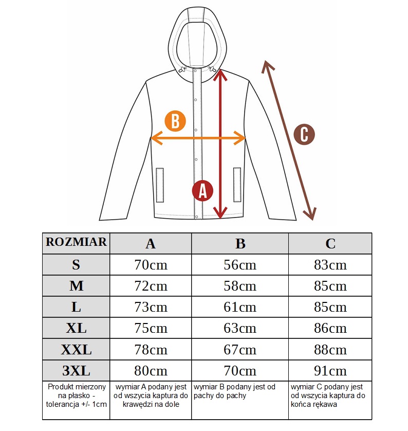 - powleczenie kurtki z paro-przepuszczalnej membrany ( 3000 g H2O/m2 );