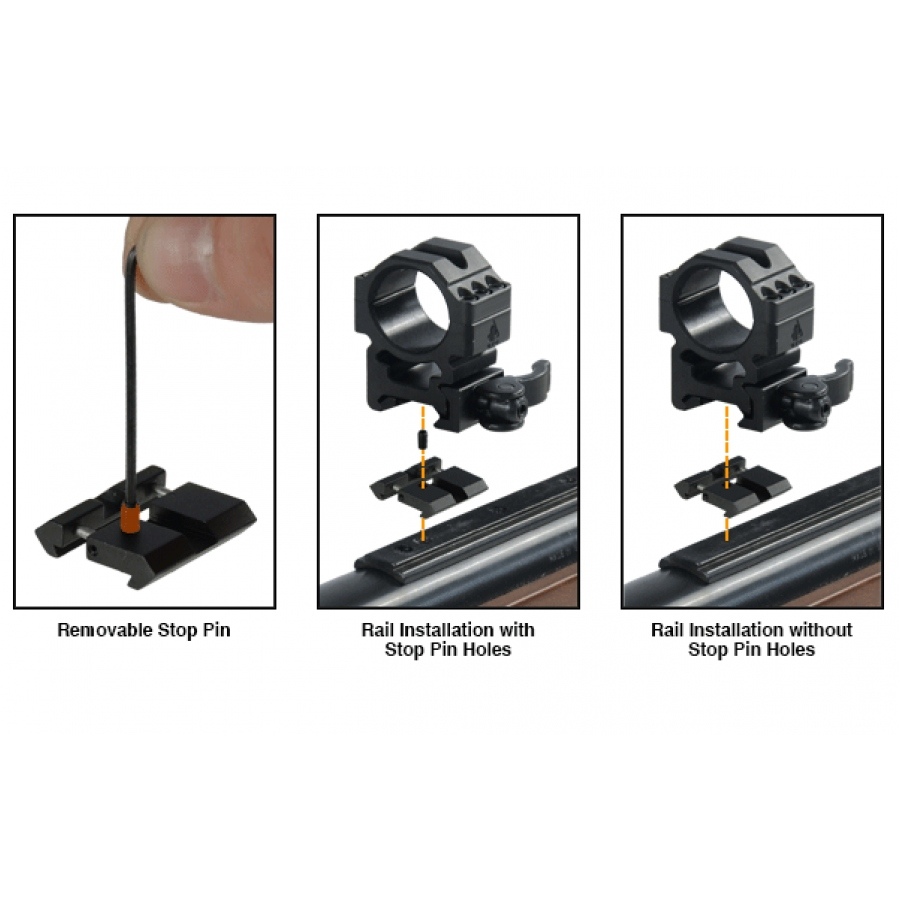 Adapter/przejściówka Leapers umożliwia szybkie i łatwe dostosowanie montażu weaver/picatinny do szyny 11 mm. Składa się z dwóch oddzielnych części, które należy wpiąć w szynę, którą chcemy przystosować do standardu 11 mm.