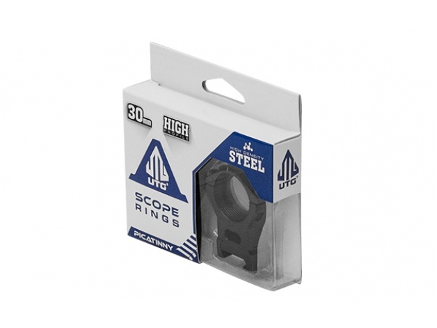 Montaż stalowy UTG, dwuczęściowy wysoki do mocowania optyki o tubusie 34 mm na szynie Weaver/Picatinny.