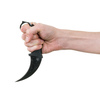 Nóż typu karambit o konstrukcji full-tang, czyli z jednego kawałka metalu aż po sam koniec chwytu. Na końcu znajduje się duże kółko na palec, co zapewnia pewny chwyt niezależnie prawą czy lewą ręką. Okładziny wykonane są z czarnego tworzywa sztucznego. Chwyt jest profilowany w taki sposób, aby chronić palce przed przypadkowym ześlizgnięciem się na ostrze.