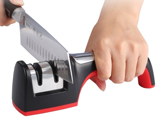 Ostrzałka Diamentowa Taidea do noży TG1005 (239-002) posłuży przede wszystkim do ostrzenia noży kuchennych. Za pewny i stabilny chwyt odpowiada gumowa, antypoślizgowa rączka dzięki temu ostrzenie noży jest bardzo bezpieczne. Zaprojektowana w ten sposób aby precyzyjnie ostrzyć podczas ruchu w obie strony a to dzięki zastosowaniu kółek ostrzących. Każda ze szczelin posiada inny materiał ścierny o różnej gradacji. Pierwszy to kółka diamentowe o gradacji 360 - tego należy użyć kiedy nóż jest bardzo tępy aby przeprowadzić wstępne ostrzenie i nadać ostrzu odpowiedni kąt. Nada się też do ostrzenia noży ceramicznych. Drugi materiał to kółka ceramiczne o gradacji 1200 i tego należy użyć aby wygładzić powierzchnię ostrza podczas ostrzenia ostatecznego. Zalecane jest do szybkiego ostrzenia noży lub do wykończenia ostrzenia tępego noża.